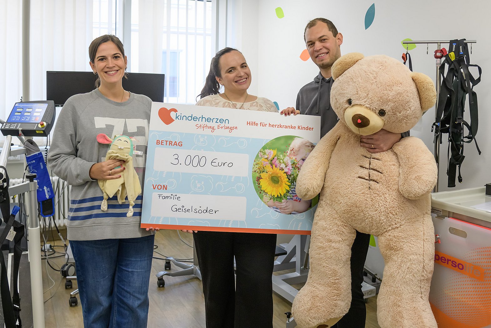 Ansbacher Elternpaar spendet 3.000 Euro für Sportärztliche Untersuchungsstelle und „Cuddling Creatures“